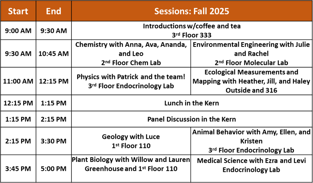 3:45 pm – 5:00 pm: Medical Science (Cole 3 Open) AND Plant Biology (Greenhouse)